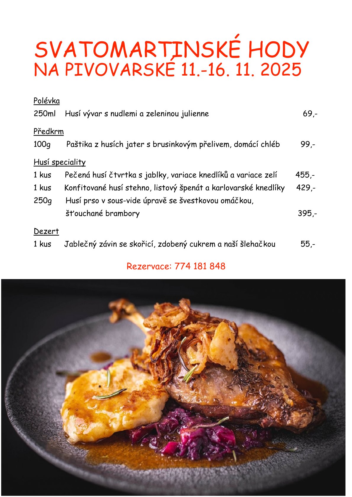 Srdečně vás zveme k tradičním svátkům sv. Martina. 11.-16. listopadu si přijďte pochutnat na svatomartinských dobrotách!